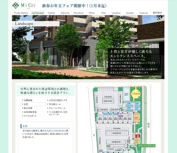 デザイン/FLASH/HTML/画像加工 (top/plan/location/accessページ以外) デザインはヘッダー・フッター以外を担当