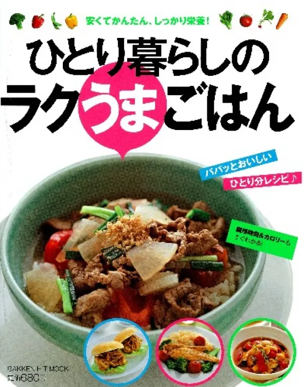 ひとり暮らしでも手軽に作れるレシピを、大きな写真と文字で手順を追って分かりやすく紹介。 それぞれ調理時間、カロリーの目安つき。 材料や料理の保存方法、料理を楽しくするヒントなどの小ネタも掲載。