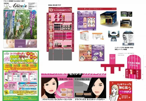 パッケージ、チラシ、化粧品POP、新聞など
