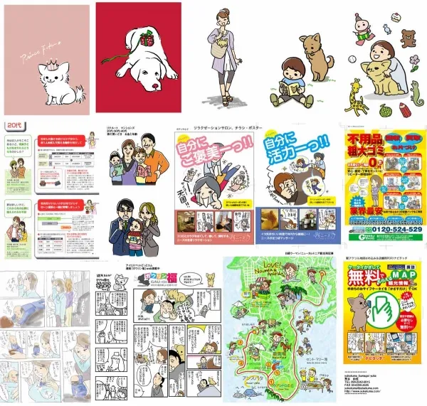 チラシ、ポスター、イラスト漫画を入れた広告