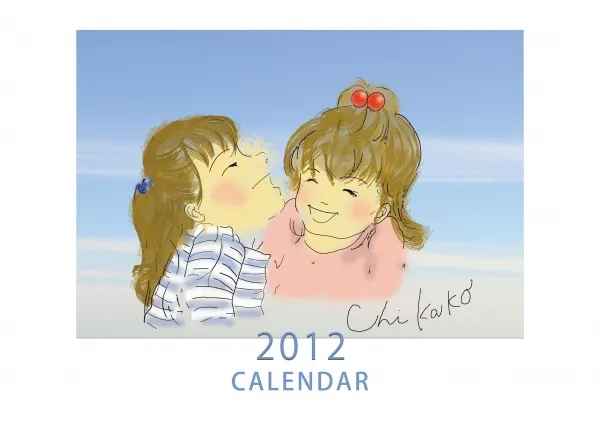 真っ青な空をカメラに収め、それを背景に二人の姉妹が寄り添う様子を描きました。フォトショップを使用しています。