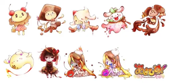 スマートフォンアプリに使われているキャラクターです。 お菓子をテーマにしたゲームで、そのような妖精たちをデザインしました。