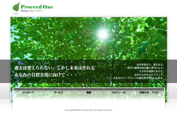 デザイン、コーディング(xhtml+css)を請け負いました。 グリーン&エコ基調、落ち着いた感じで信頼感があるデザインを希望されていたので、「コーチングによって成長していく」イメージで、上に向かって伸びていく緑のイメージをいくつか提案しました。