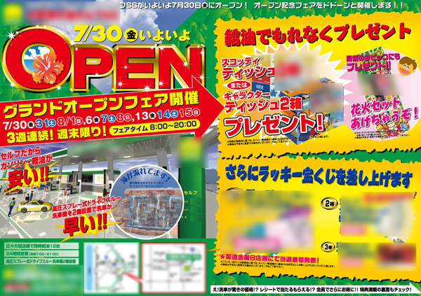 某石油元売り会社の新規店舗オープンに伴う新聞折込チラシです。