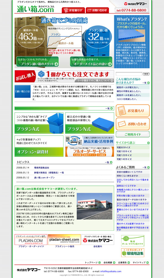 紙段ボールに変わるエコ資材プラダンを使った梱包箱の規格品に特化したサイトの新規構築。