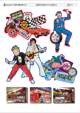 ナムコ大高店の内装用イラスト(サインやキャラクターなど全て) ..