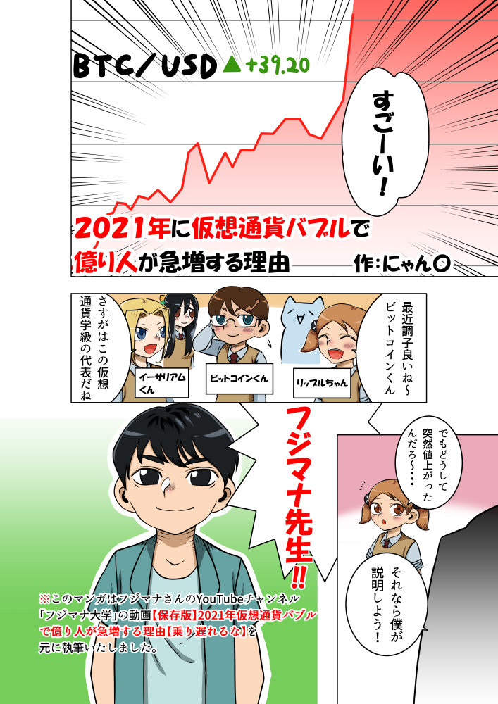 某有名仮想通貨系Youtuber様の動画を漫画化したものです。ご本人様から高い評価をいただきました。