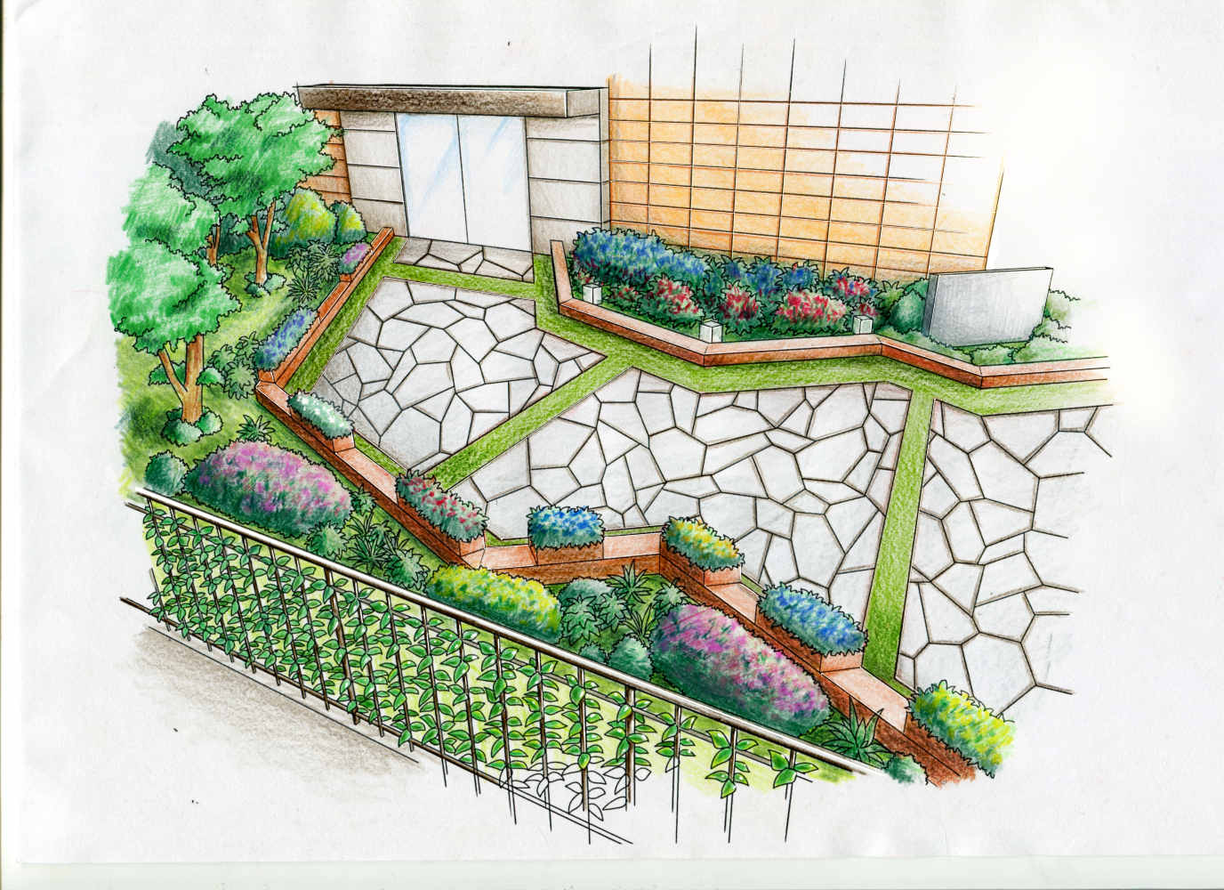 マンション庭イラスト
