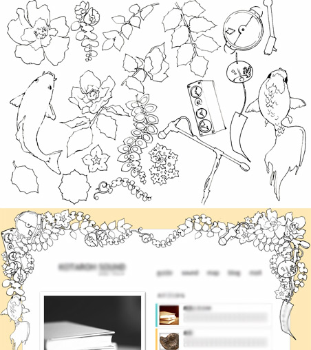 ペンで描いた後、スキャナーで取り込み、HPのヘッダ部分として使用しました。