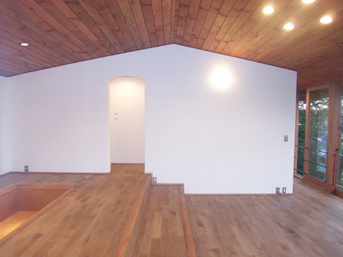 壁ー硅砂漆喰塗り 一部羽目板張り