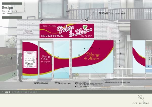 交通量の多い道路のそばで営業している個人サロンで、転居後間もない店舗です。以前からの既存客は定着していたのですが、新規客の獲得が困難で店舗のイメージを変えたいとの要望でした。
