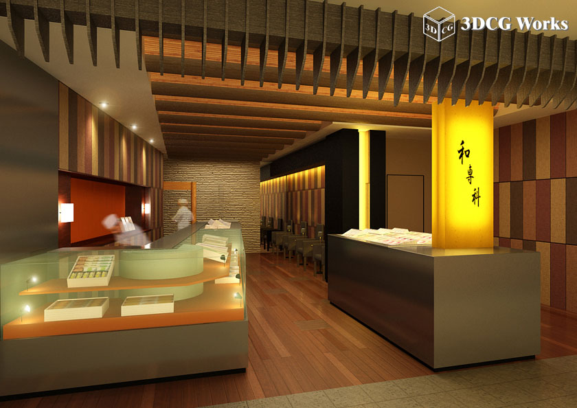 店舗の内観パースになります。掲載している画像は全てサンプルでありクオリティの目安として御確認して頂くものであります。
