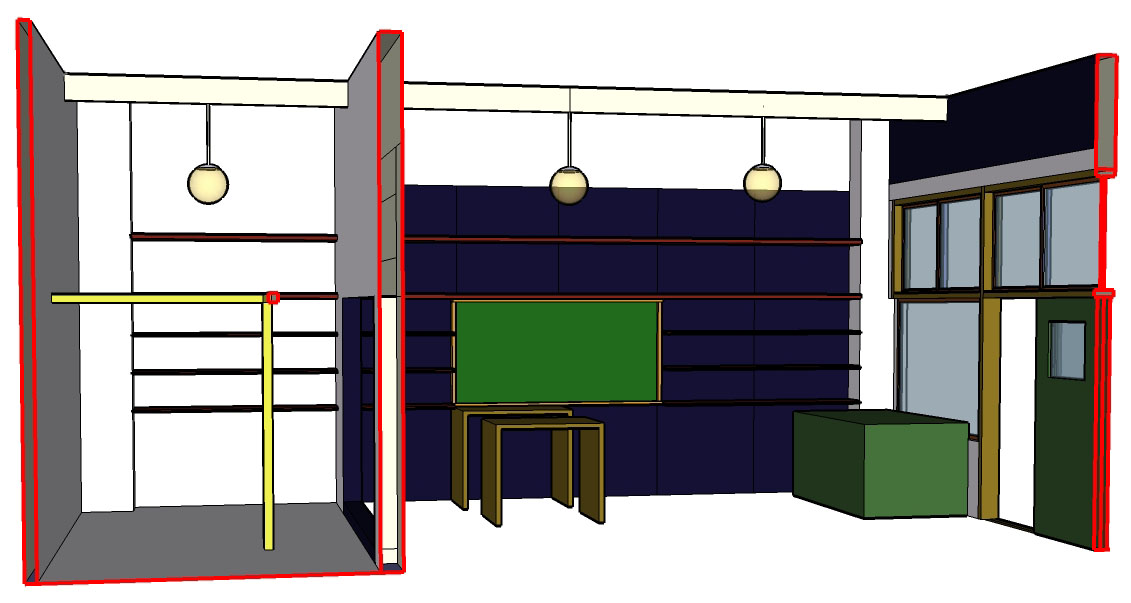 スケッチアップで二つの空間(事務局とショップ)と