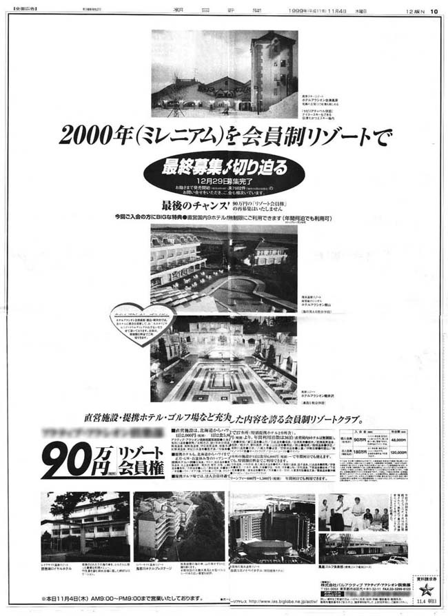 リゾート会員権販売の新聞広告です。新聞広告は掲載料金が非常に高いので、いつも緊張して作っていました。