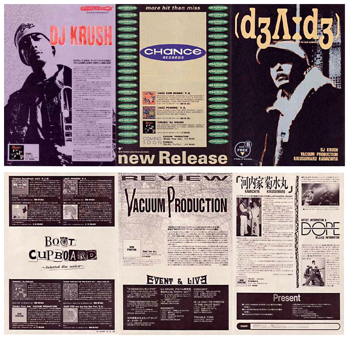 レコード店などにおくフリーペーパーです。これは古い仕事で、まだMac化する前でしたのですべて版下で作っています。今ならこういうデザインもコンピュータで簡単なのにといつも思います。
