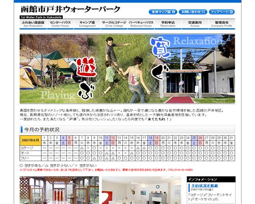 キャンプやコテージ、温泉のあるリゾート施設のサイトです。青を基調に爽やかなイメージで制作しました。 ..