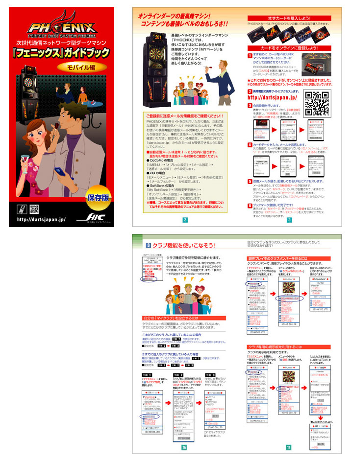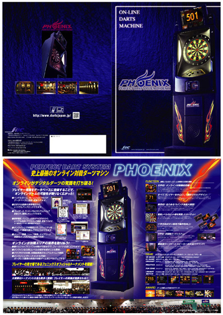 先進的な機能を備えたダーツマシンのパンフレットです。若い男性がメインユーザーであり、彼らが多く集まるお店などに訴求するものなので「強い」「カッコイイ」イメージになるように心掛けました。