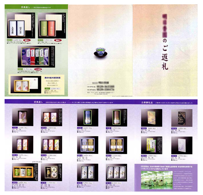 香典返しや会葬御礼品などに利用していただくお茶ギフトのパンフレットです。
