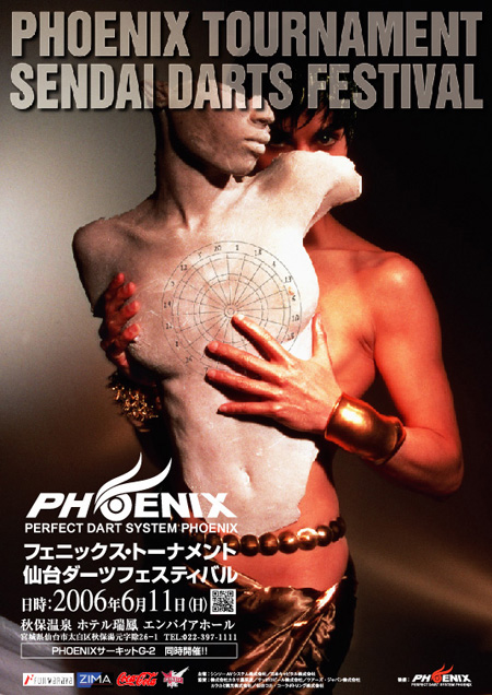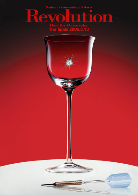 ダーツの大会用のポスターです。女性が持つ石膏の心臓部を中心にダーツの的が彫られたようになるよう画像加工をしました。