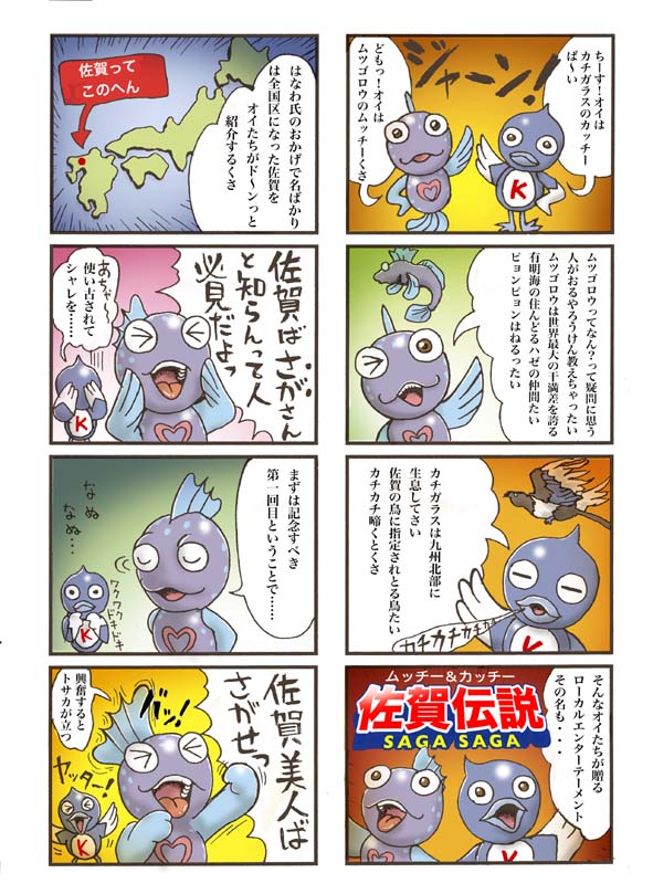 佐賀では有名な動物、「むつごろう」と「カチガラス」がそれぞれキャラクターとして登場!