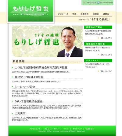 県議会議員候補の「もりしげ哲也」様のWEBサイトのトータルプロデュースを担当させていただきました。 ..