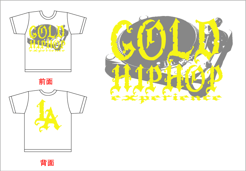 HIPHOP系ブランドのT-シャツデザインです。あまりハードなイメージにならない様に色構成を抑えてデザインしました。ポイントはターンテーブルと、背面のLAの文字でスポーティーさを出してみました。 ..