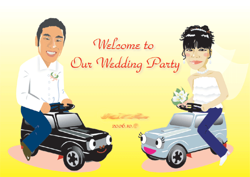 知人のツテなのですが、似顔絵ウェルカムボードを製作しました。