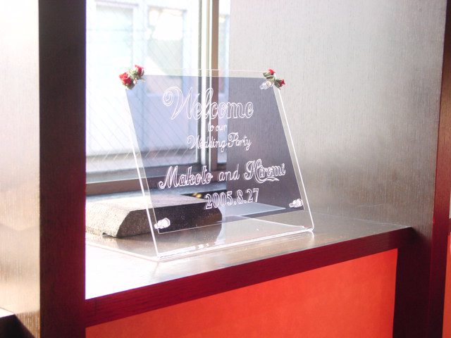 という依頼のもとにアクリルを加工・彫刻し、照明機能を付け、光るウェルカムボードを制作しました。