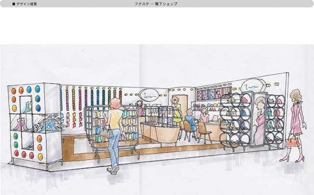 下着、靴下メーカーさんの新ブランドにおける、売り場の企画、デザイン提案を行いました。
