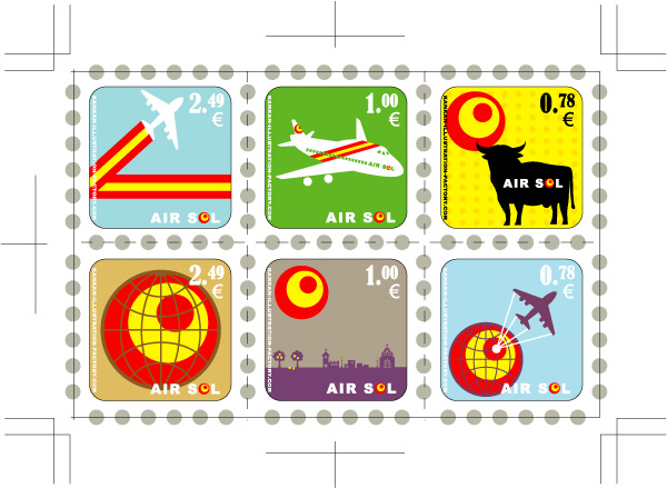 切手の形をした切り離しのできるマグネットのデザイン。 ..