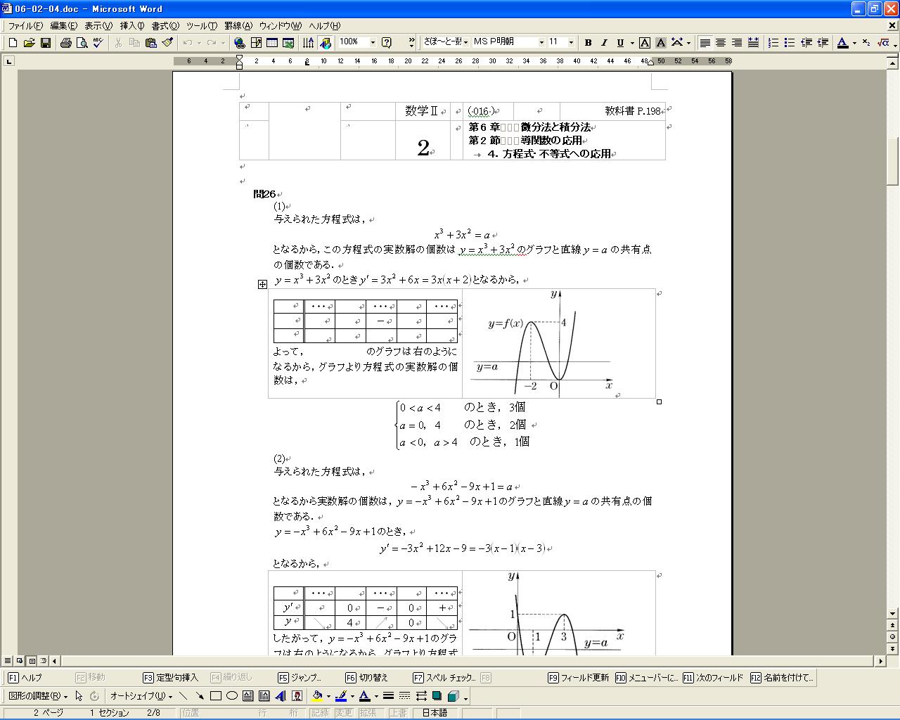 高校数学の教科書中に出題されている問題の回答をワードで入力していく業務です。