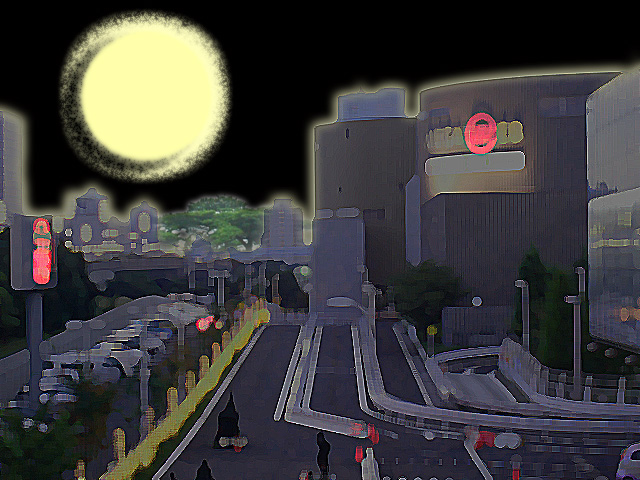お台場で撮影した写真を加工して、月は書き加えました。。。 ..