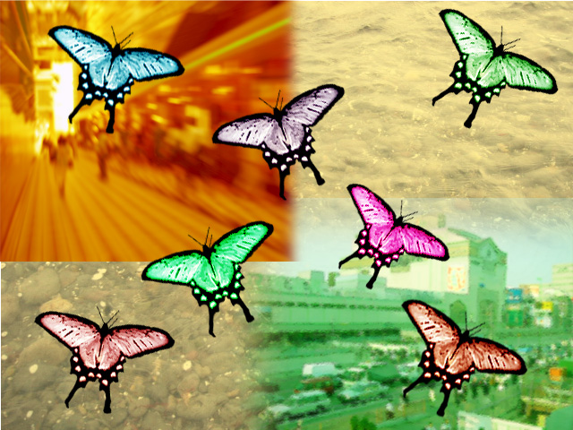 本物の蝶の写真を写真加工して、背景を入れてみました。バタフライエフェクトを意識しています。。。 ..