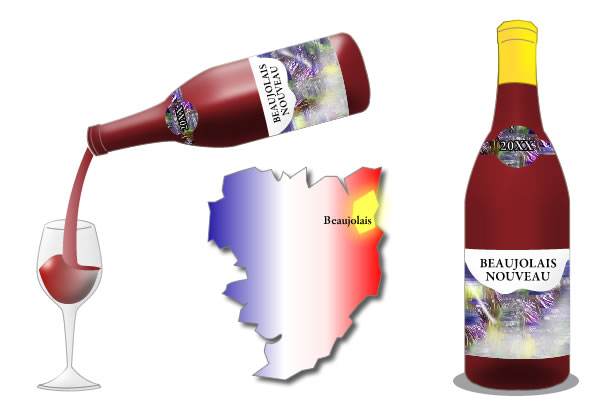 今年のボジョレーヌーボーの解禁日は11月20日だそうです。ボジョレーヌーボーをイメージしたイラストです。 ..