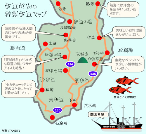伊豆を愛するWEBデザイナーが作るWEBサイト「伊豆好き」で掲載している伊豆の地図です。 ..
