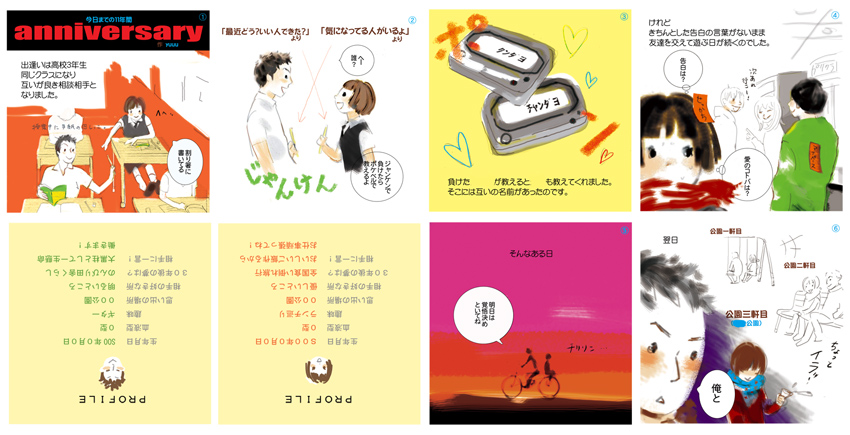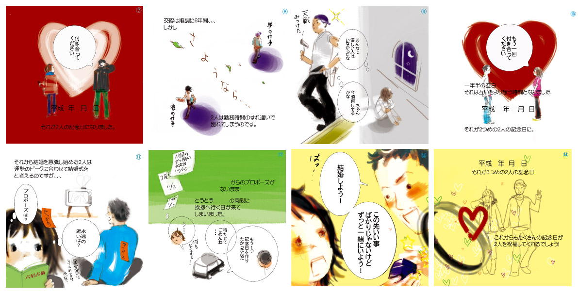 お2人の馴れ初めをポップな漫画絵本形式でご依頼頂きました。